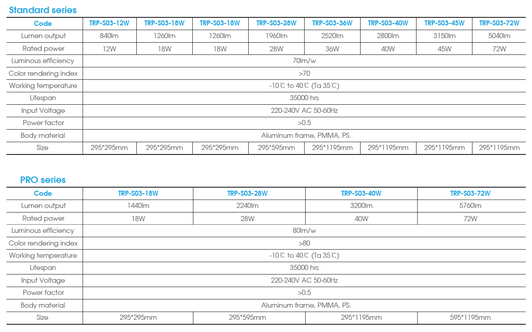 Wattage: 12W;18W;28W;36W;40W;45W;72W