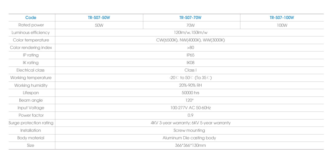 Lumen efficiency: up to 150lm/w RA≥70